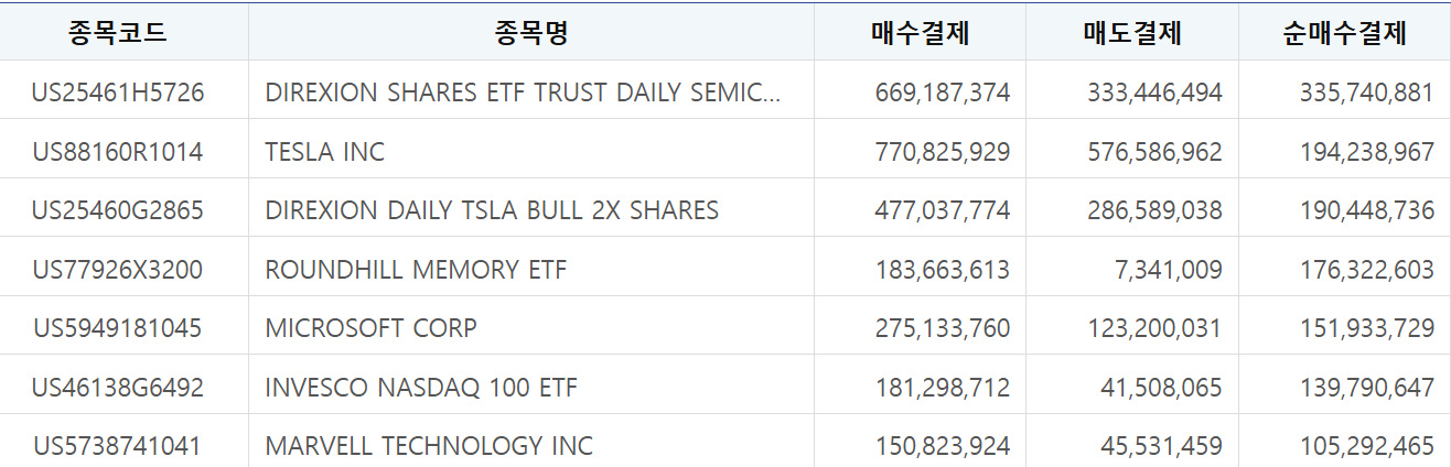 4月整体数据中,韩国股民净买入最多的是Direxion三倍做多半导体ETF(SOXL)、特斯拉、两倍做多特斯拉,以及Roundhill刚推出的存储ETF(DRAM),非常符合外界对韩国股民“拉杠杆炒科技股”的印象。